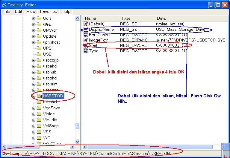 2.masuk ke subkey HKEY_LOCAL_MACHINE\SYSTEM\CurrentControlSet\Servic es\UsbStor